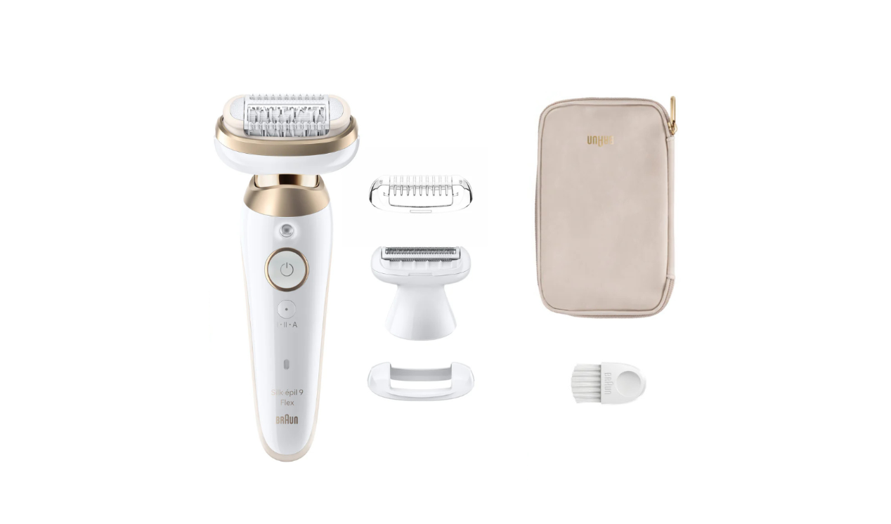 Braun Silk-épil 9-Flex עם ראש רחב להסרת שיער מהירה במיוחד. ליהנות משבועות של עור חלק כמו אצל הקוסמטיקאית הודות לטכנולוגיית Micro-Grip וראש רחב ב-40% המסיר שערות קצרצרות מאורך 0.5 מ"מ. ראש הגילוח והקוצץ מעניקים אפשרויות נוספות להסרת שיער באזורים רגישים. האפילטור לנשים חסין במים ב-100% ומאפשר להסיר שיער באמבטיה או במקלחת להסרת שיער ללא כאב.